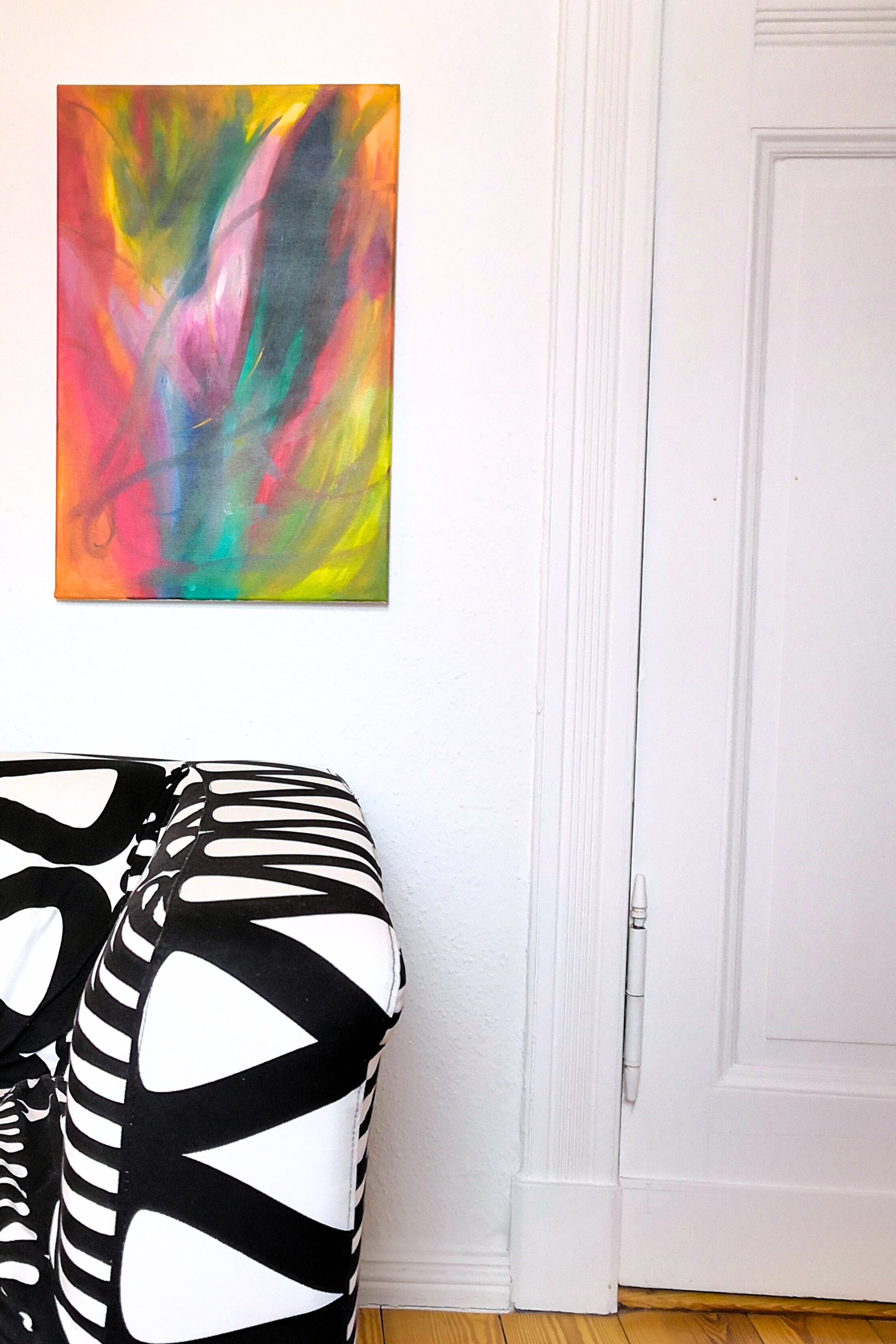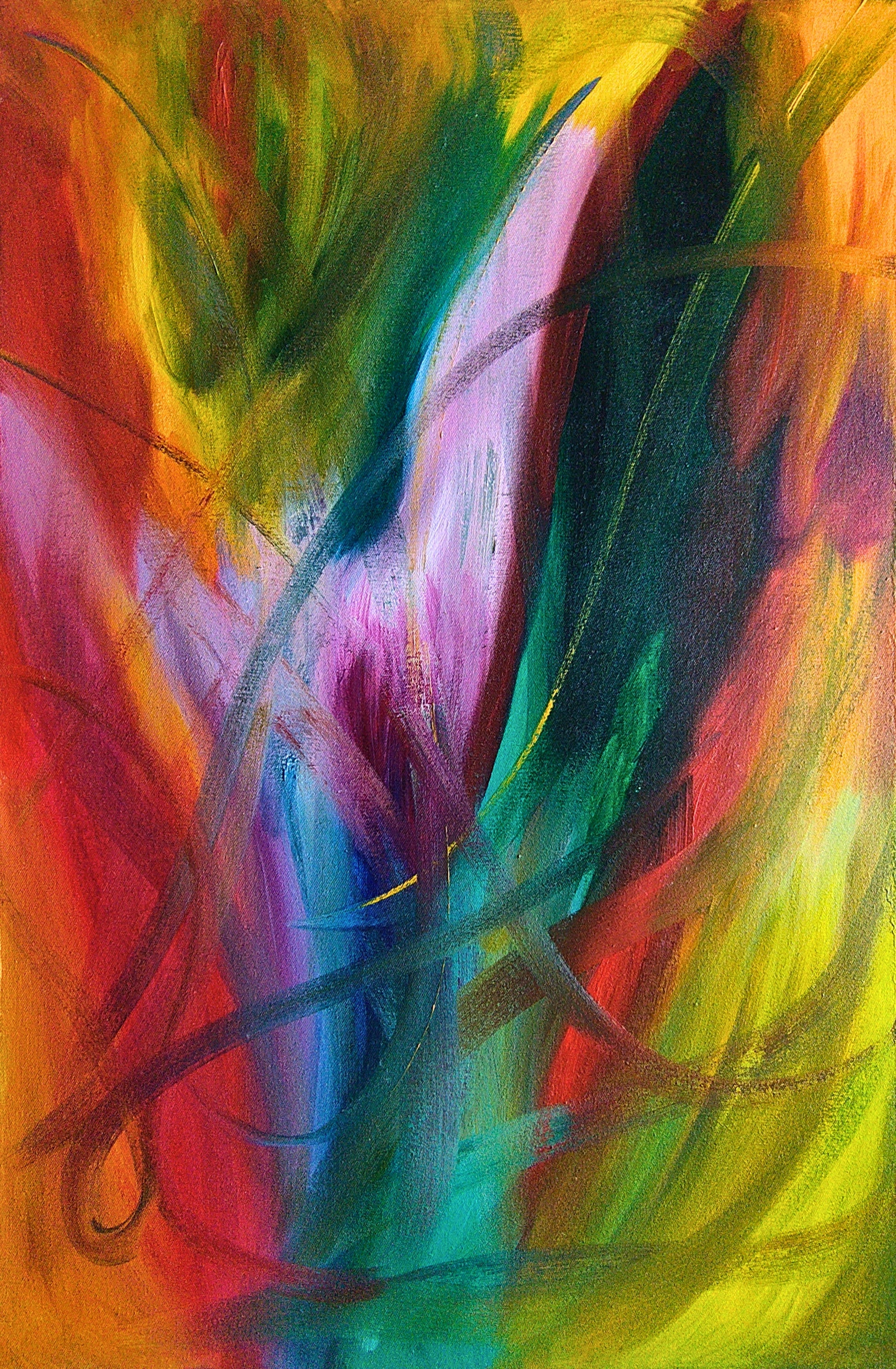 Dieses Gemälde bringt mit seinen leuchtenden Farben, der beherzten Art und seinen schwungvollen Linien Freude beim Anschauen.